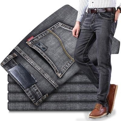 первая страница > Одежда > Повседневные демисезонные мужские эластичные джинсовые брюки в классическом стиле прямого кроя